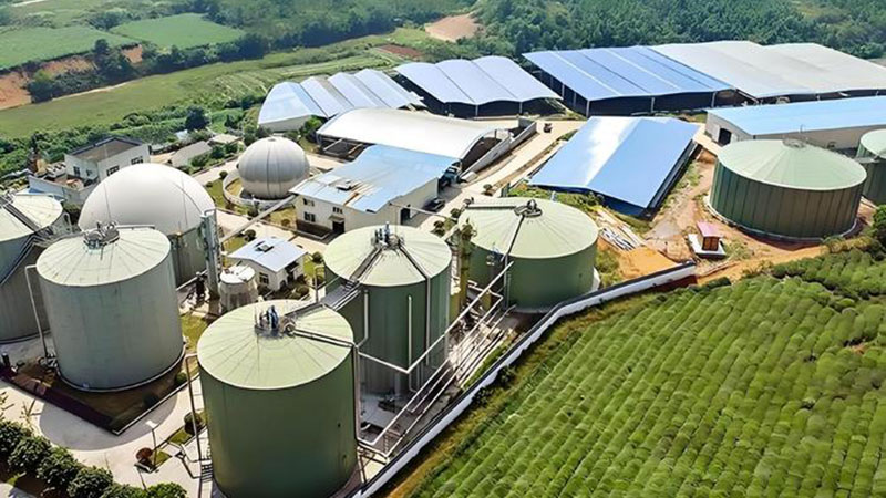 本工程為畜禽污和秸稈共同發(fā)酵工程,采用“CSTR+熱電聯(lián)產(chǎn)”的工藝路線,該沼氣工程的建設(shè),解決了當(dāng)?shù)匦笄荼銕?lái)的污染,大大改善了養(yǎng)殖場(chǎng)的衛(wèi)生環(huán)境條件,改善了人民的居住條件,實(shí)現(xiàn)家居供暖清潔化,農(nóng)業(yè)生產(chǎn)生活無(wú)害化,年處理家禽糞污約2.2×104t,秸稈約1.5×104t,年生產(chǎn)沼氣約1.1×106m3。